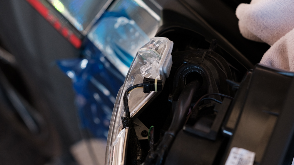 純正ウィンカーのコネクタ部は、こんな感じです。