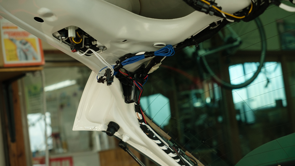 カメラ配線を車両前部まで持っていって。