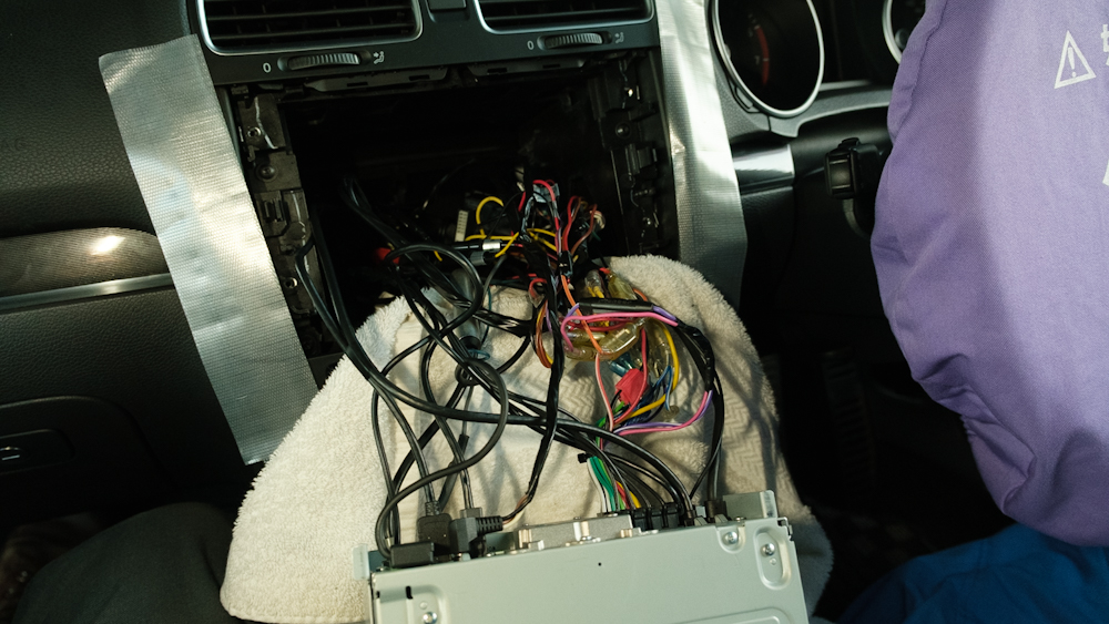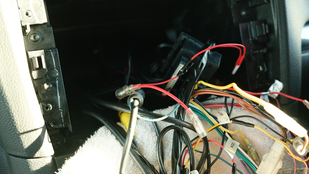 いよいよ纏めに入る段階で、ナビ裏配線で止まっている作業でございます。