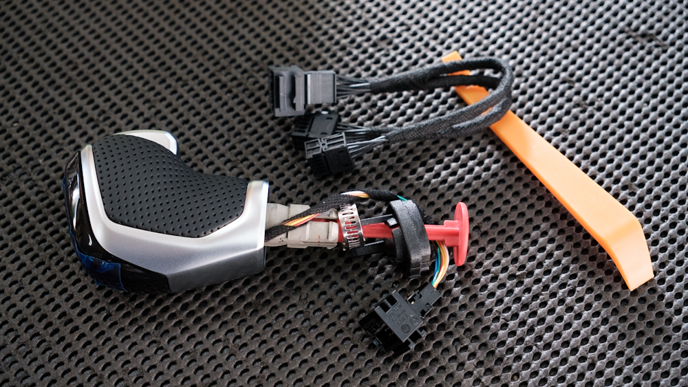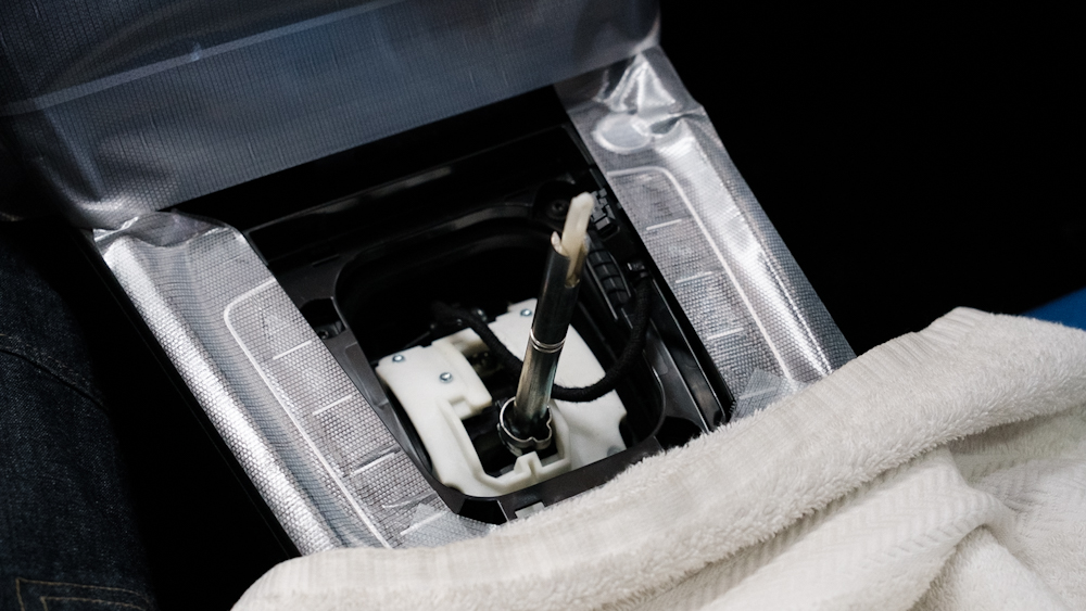 お客様持込の、純正風シフトノブ(インジケーター付き)に交換です。