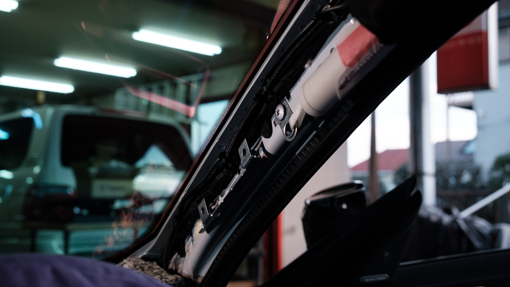 アンテナはフロントガラスに設置するので、Aピラーカバーは外して作業。