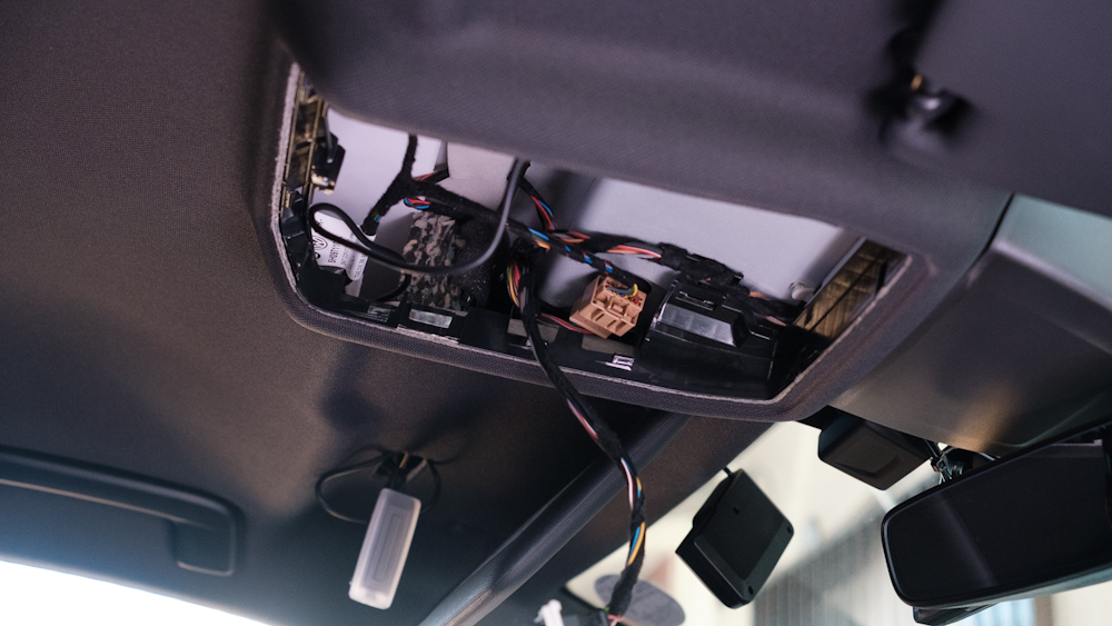 ルームランプ裏を利用して配線をまとめます。