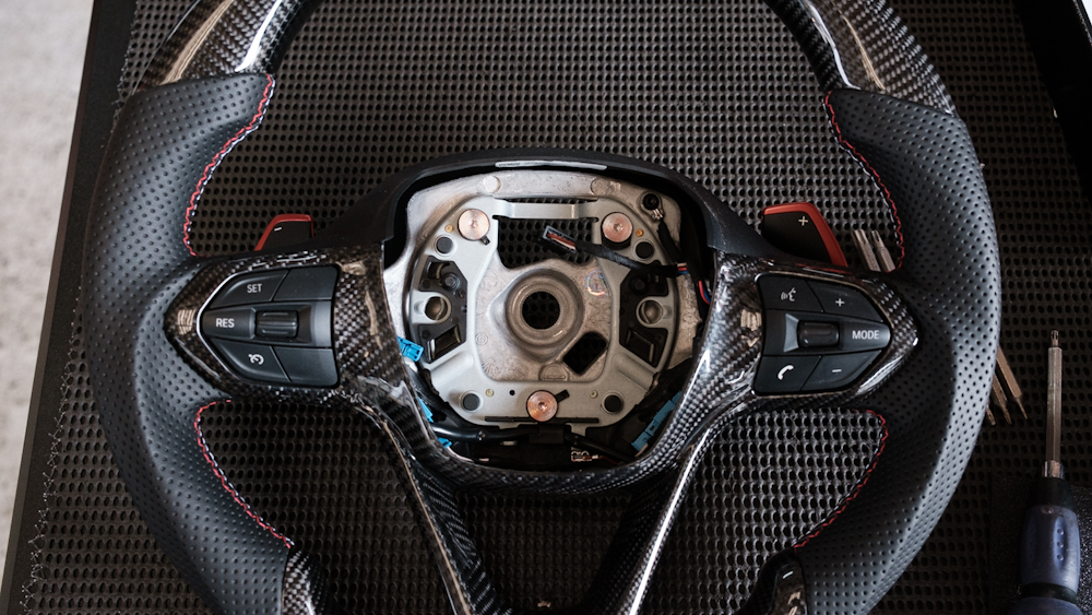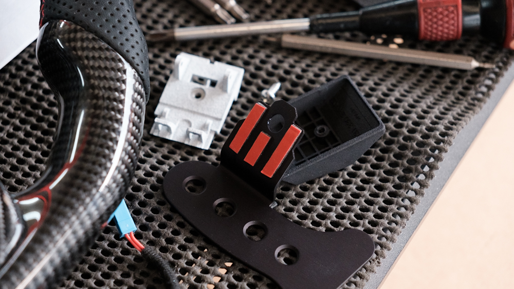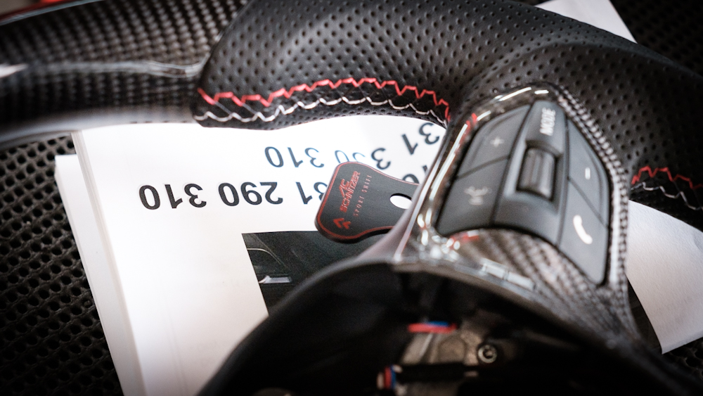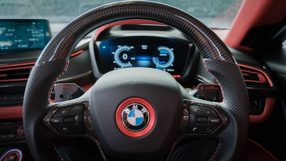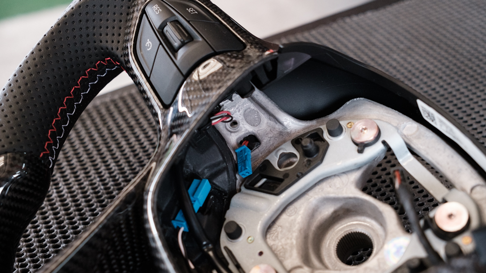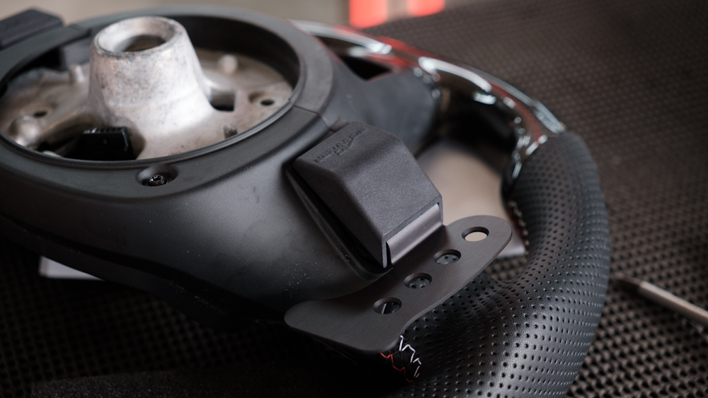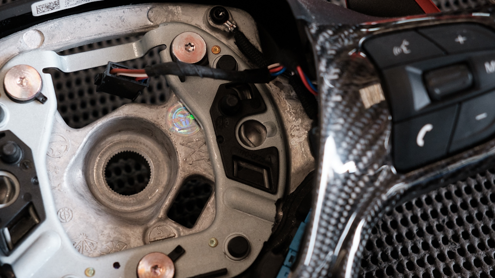 BMWは、ステアリング側面に穴を開けるので少々気が引けますよね。