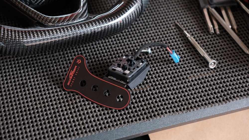 さて今回のご依頼は、acschnitzer製パドルシフトの取付。